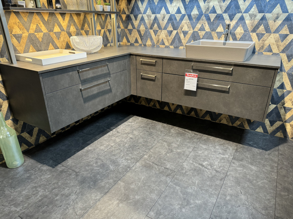 Front 839 Beton TerragrauKorpus 089 SteingrauBügelgriff 709 Edelstahlfarbiginkl. LED-BeleuchtungSystemCeram Keramik Becken Sanara 50 Fango 35220223