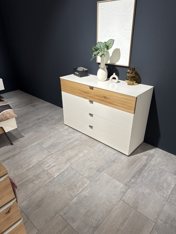Lack weiß Eiche massiv Absetzung Best. aus: Kleiderschrank Bett 180 x 200 cm 2x Nako Kommode Ohne Lattenroste und Matratzen