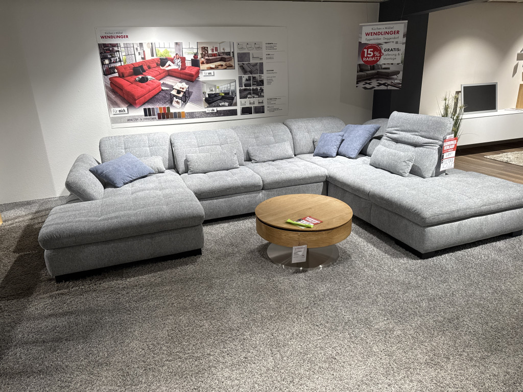 Bezug Stoff Hellgrau Inkl. Sitztiefenverstellung, Armteilverstellung, Kopfteilverstellung, Bettfunktion, Bettkasten und Kissen Ca. 401 x 278 cm