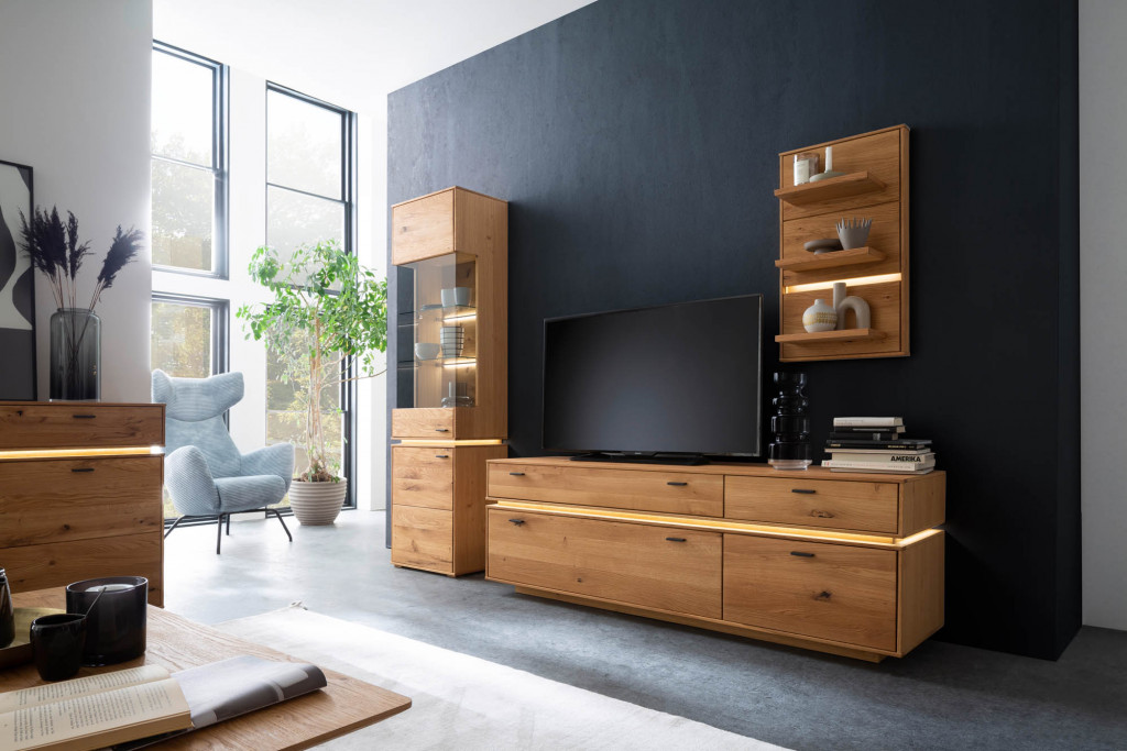 Rückwand sichtbar: Asteiche furniert, Oberfläche geölt